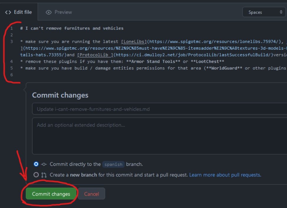 Edit the file and then press Commit changes