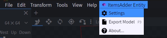 Now you can configure your model based on your preferences. The ItemsAdder extension automatically decided some settings for you but you might need to change them. Click on the ItemsAdder tab and press Settings.