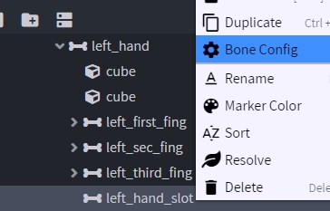 Rightclick on the bone and select "Bone Config", in this case left_hand_slot