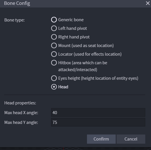 Check the "Head" option and press "Confirm". You can also decide max angles for X and Y rotation.