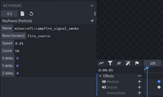 XYZ delta: specifies the dimensions (in number of blocks) for each dimension of the particle effect, with x y z in the center. Each coordinate specifies the number of blocks from the center that the particles will appear. You can set decimal numbers.